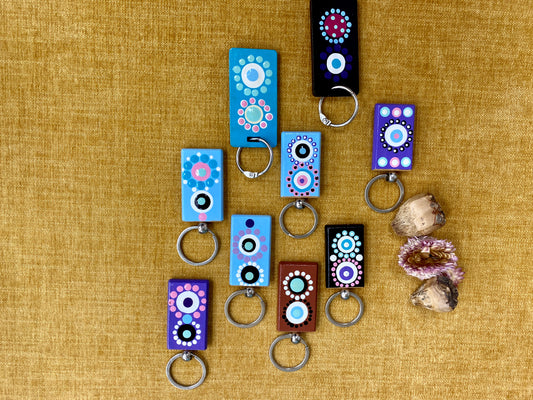The beauty of Awabakal land is the heart of her inspiration and shapes many of her artworks. It is her passion to incorporate her culture into her paintings and tell the stories of her heritage, her life, country and family. Jodie spends many hours in her home studio where she feels motivated to embrace her creativity. Jodie’s artworks are vibrant and colourful, layered and unique to her style sharing stories and experiences.