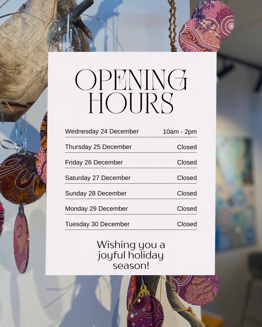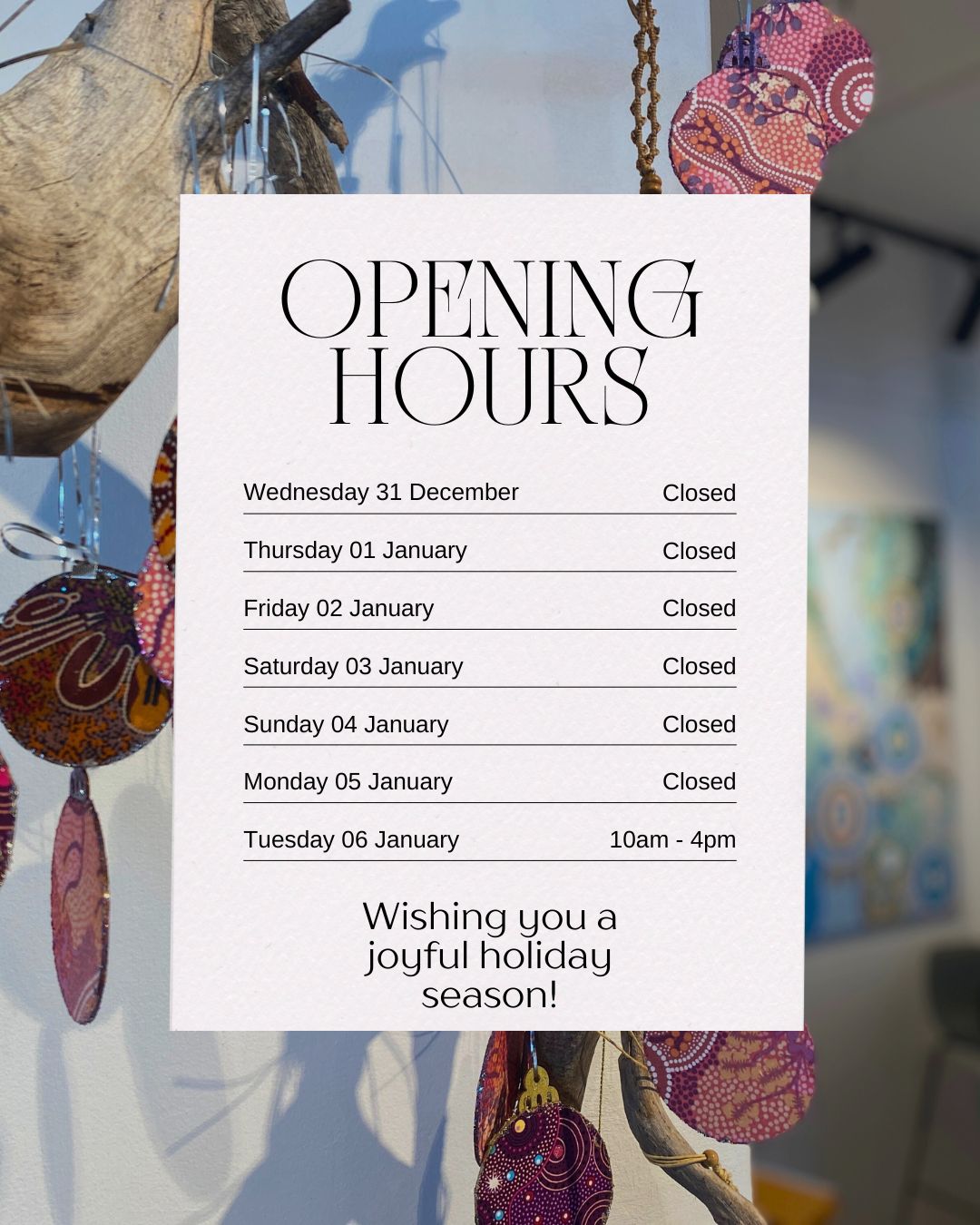 The Gallery is closed NSW public holidays