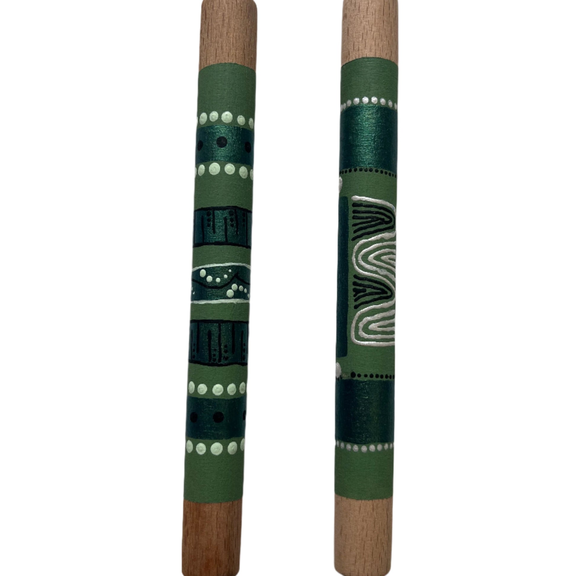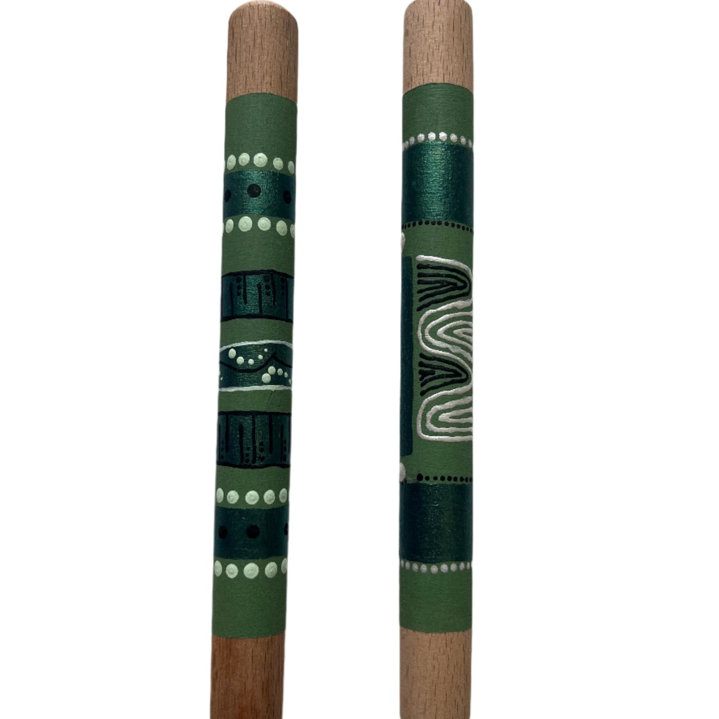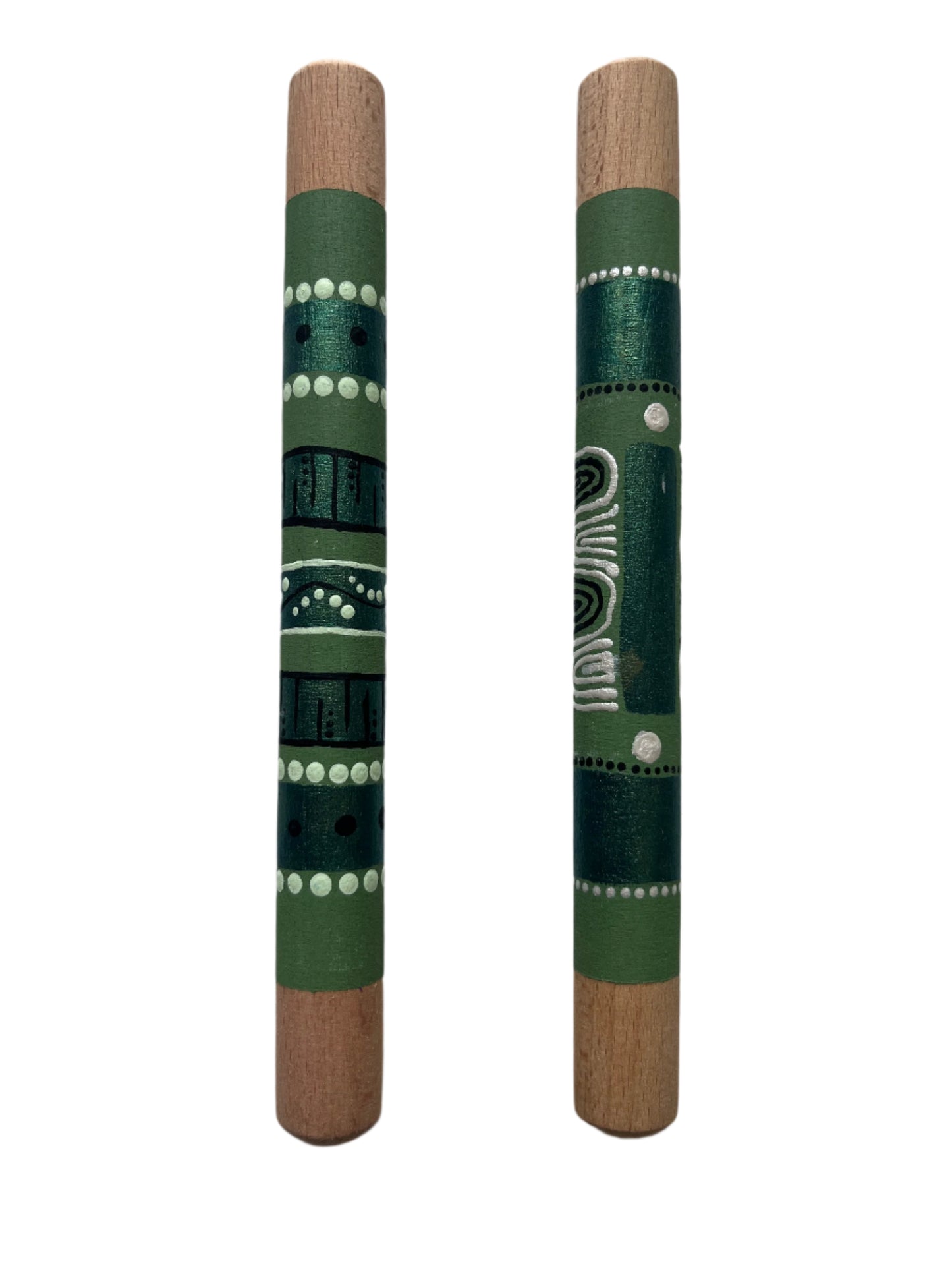 These instruments are more than just musical tools—they’re deeply embedded in cultural storytelling and spiritual practices. The rhythmic patterns created with clap sticks help convey Dreamtime stories. These clap sticks reflect community, purpose, and connection to Country.