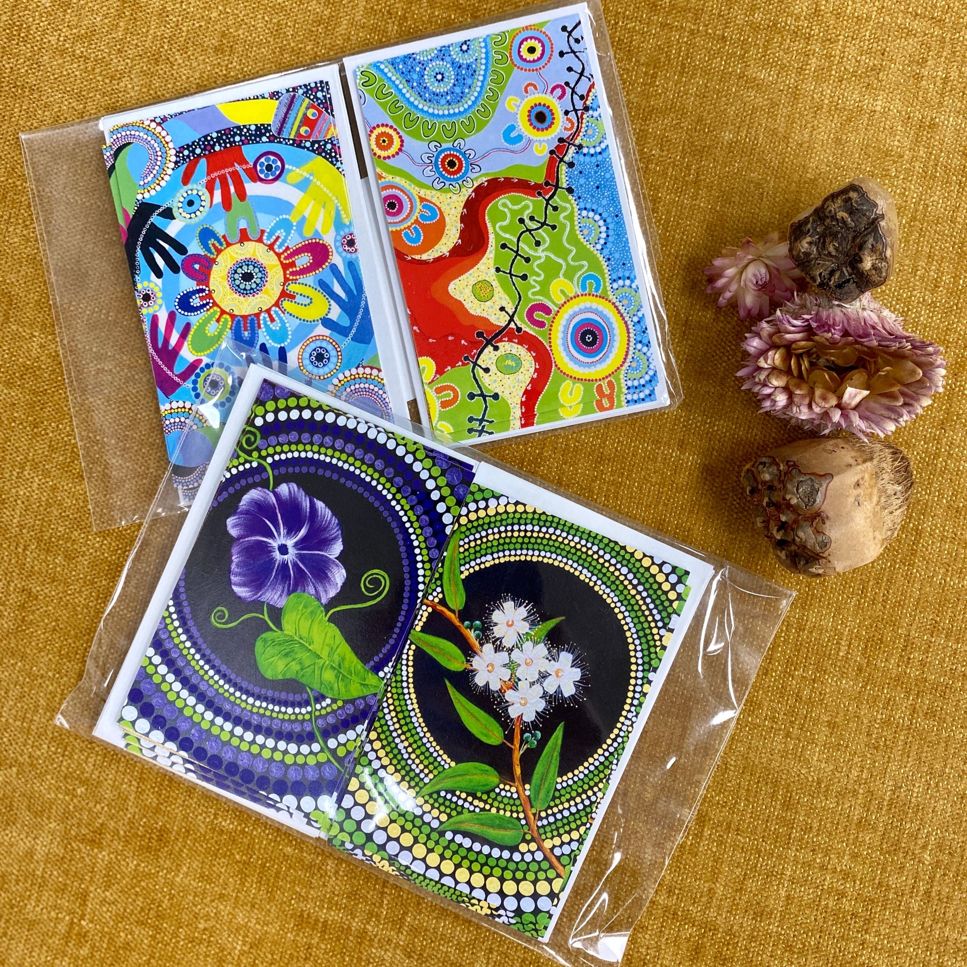 The beauty of Awabakal land is the heart of her inspiration and shapes many of her artworks. It is her passion to incorporate her culture into her paintings and tell the stories of her heritage, her life, country and family. Jodie spends many hours in her home studio where she feels motivated to embrace her creativity. Jodie’s artworks are vibrant and colourful, layered and unique to her style sharing stories and experiences.